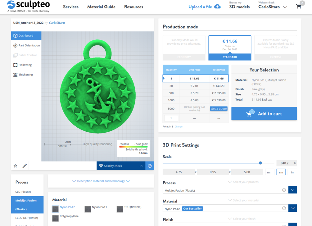 File sizes: X=56.6cm; Y=70cm; Z=11.3cm. Manifold checked, Sculpteo suggested size (cm): 840.2%
